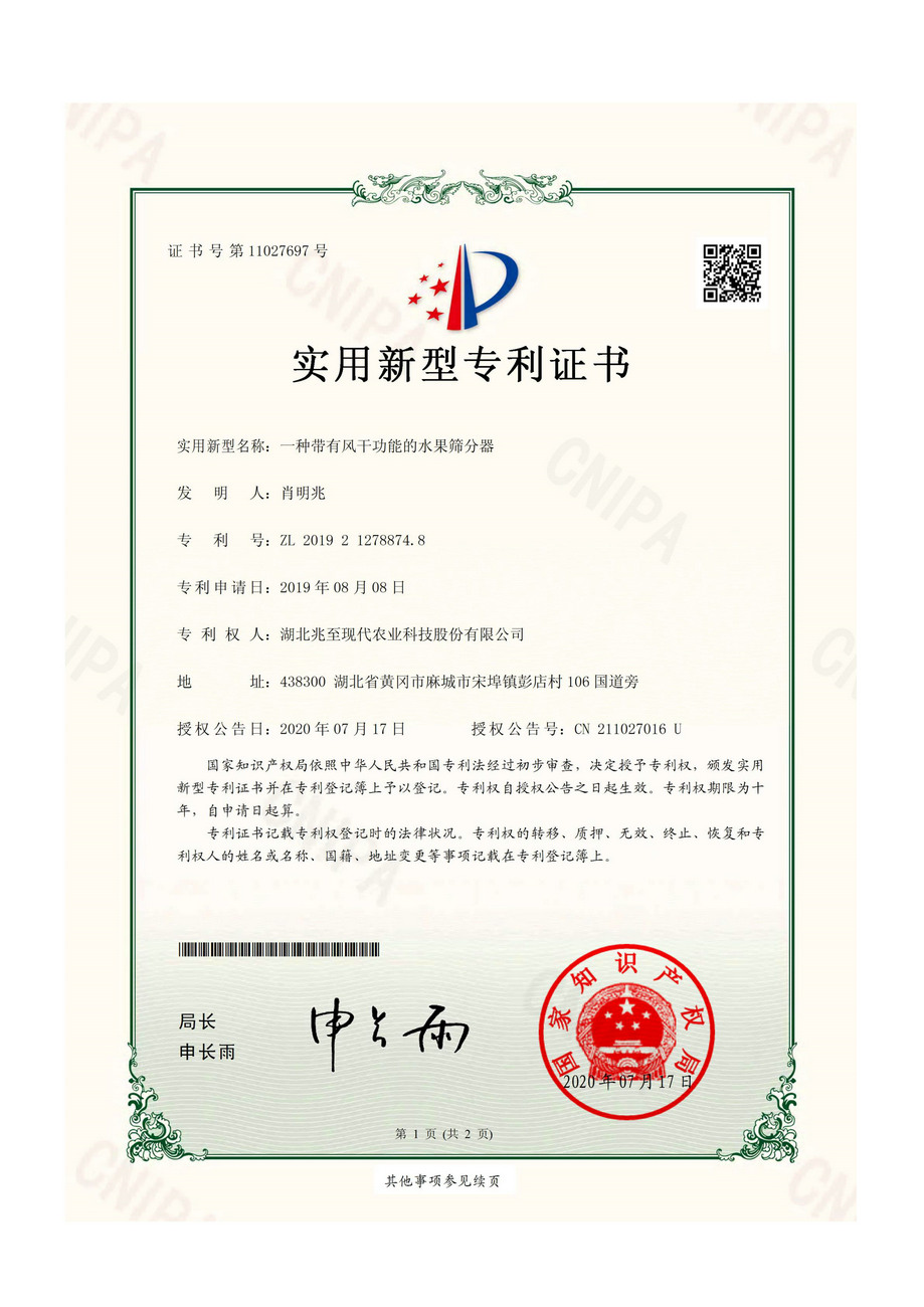 一種帶有風干功能的水果篩分器