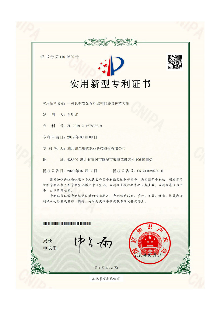 一種具有農光互補結構的蔬菜種植大棚