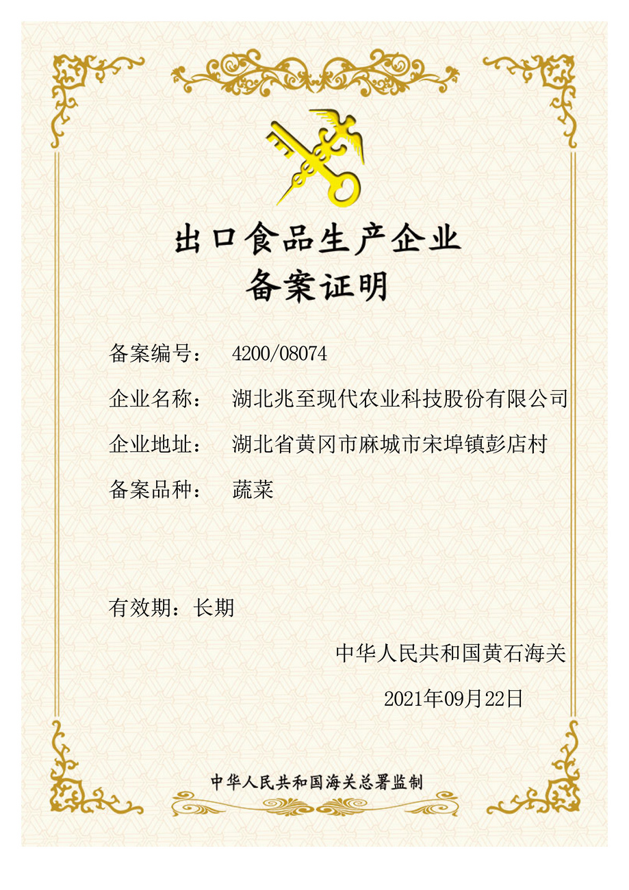 出口食品生產(chǎn)企業(yè)備案證明
